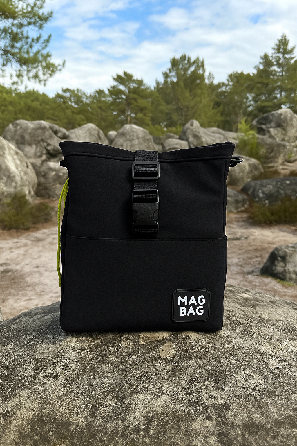 The outer shell of the MAG BAG is completely drawable with climbing chalk.